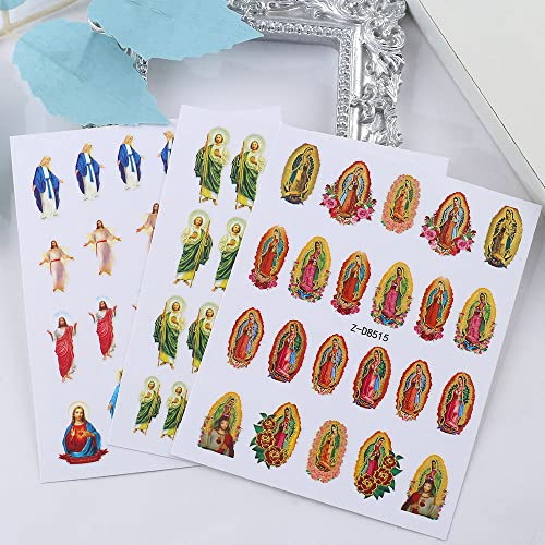Dornail 6 Sheets Bronzing Virgin Mary Nail Stickers, 3D San Judas Tadeo Nail Art Stickers Jesus Nail Decals San Judas Nail Sticker Self-adhsive Stickers for Nails Religious Nail Design Nail Supplies