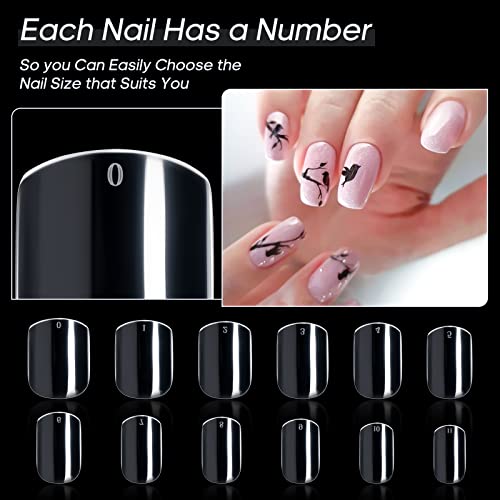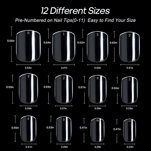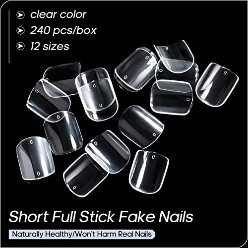 Funfe Short Nail Tips,240 Pcs Square False Nail Tip Clear Full Cover Nails Press on Nails Short Square Fake Nails Tips 12 Sizes Acrylic Fake Nails for Nail Home Salon