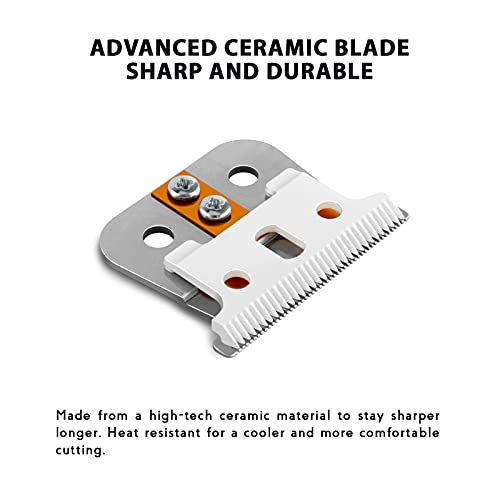 ใACCURATE EXCELLENCEใThe small blade made from a high-tech ceramic material,it keeps more wear-resistant and long service life for stays sharp.It best for OUTLINING,DRY SHAVING AND FADING.