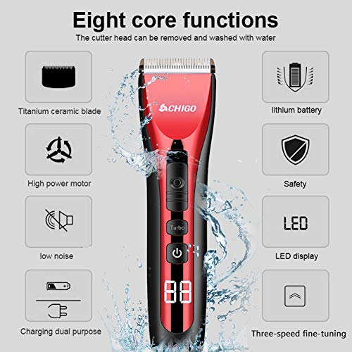 Lucky Star Pro Cordless Hair Clippers and Beard Trimmer – 5 Hour Long Life Battery, LED Display, Titanium and Ceramic Blades, Includes Length Guide Combs, Storage Bag, Portable (Set 2- Red)