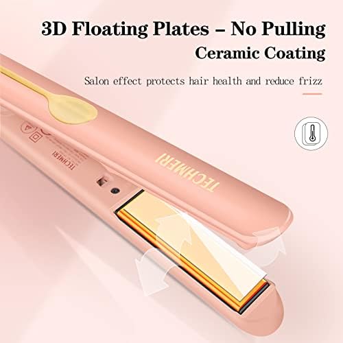 TECHMERI Hair Straightener, Salon Flat Iron Hair Straightener with Negative Ion, Titanium Hair Straightener with Auto Shut Off, Pink