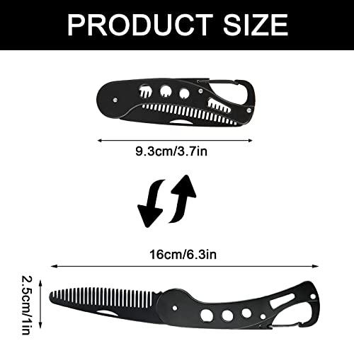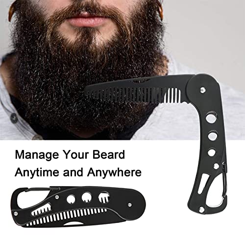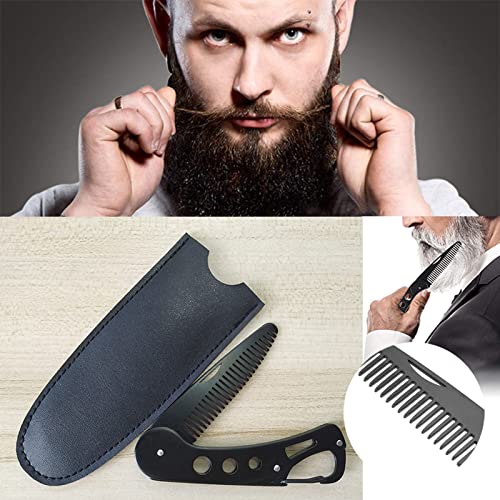 YUERWOVER Mustache Folding Comb for Men Stainless Steel Metal Pocket Beard Comb Moustache Brush Straightener Women Small Travel Comb for Grooming Styling Hair Beard (Black)